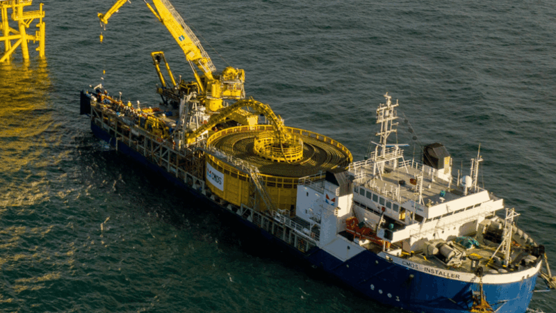 Enshore Subsea completed the installation using the CMOS Installer cable lay vessel operating from the Port of Blyth. The cable was installed in three 28-kilometer sections and required two offshore joints, which were completed using North Sea Giant. The cable will be buried in the seabed shortly.