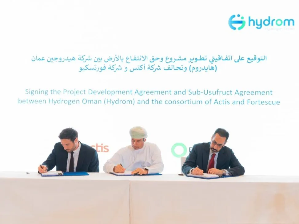 Hydrom has awarded a contract to a joint venture between Actis and Fortescue to develop and manage a large green hydrogen project in Oman. The project will involve the construction of up to 4.5 GW of wind and solar renewable energy resources that will power electrolyzers with the potential to produce up to 200,000 metric tons of green hydrogen per year. This will then be sold to local offtakers as well as processed into derivatives for export via Port of Salalah. The project is currently in feasibility stage.