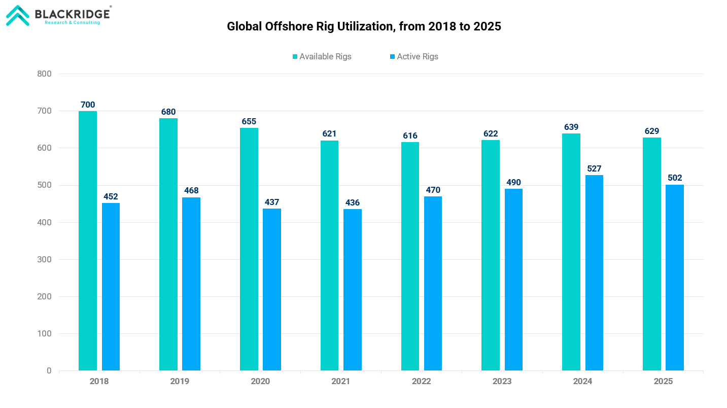 Tightening supplies are seen in regions such as Brazil and the U.S. Gulf of Mexico; the U.S. offshore fleet decreased by four units to 94 rigs, resulting in a reduction of approximately 4.08% in 2025.